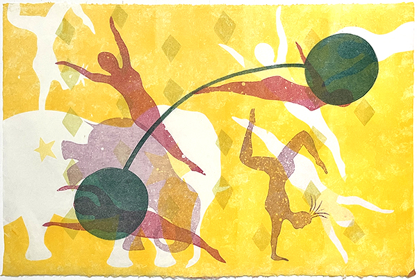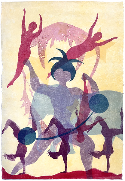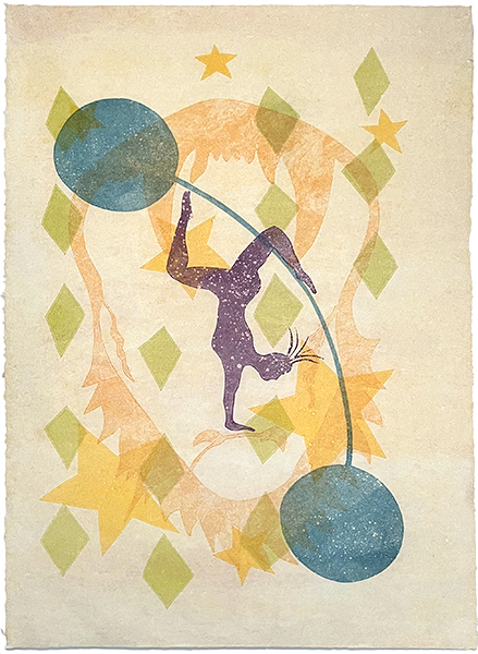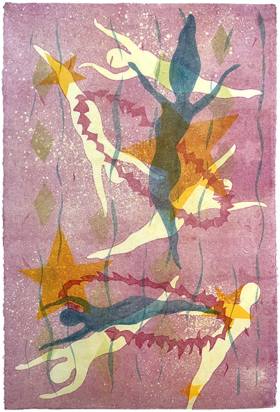 Oil-based monoprints from hand cut stencils on Kozo and Glama
